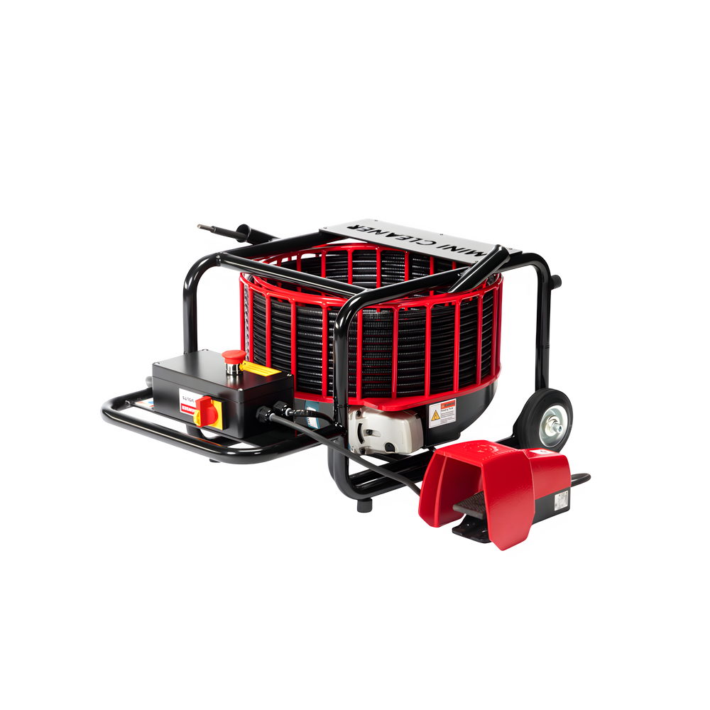The Mini Cleaner is specially designed with plumbers in mind and makes cleaning, descaling, root removal, cutting/reinstatements, and coating in 1 1/4 - 3" pipes, easier than ever before. It has a range of 50' and features a highly flexible 1/3" shaft which allows working in smaller diameter pipes, even those with multiple 90° bends and p-traps as small as 2". In the UK, and other countries without symphonic toilets, it can also be pushed through the toilet and into the stack pipe for cleaning. It is fed by a standard wall outlet making it a very easy to use on almost any jobsite*.