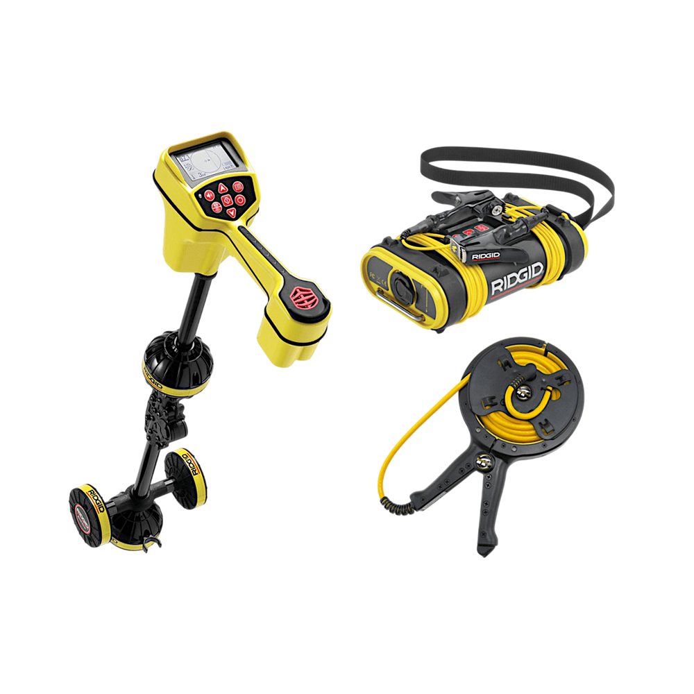 El kit de localización de servicios públicos RIDGID SeekTech KIT (46918) incluye el localizador de líneas SeekTech SR-20, el transmisor SeekTech ST-305 y la abrazadera de señal inductiva SeekTech de 4". El kit realiza una localización rápida y sencilla de cables y tuberías subterráneos.